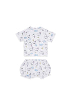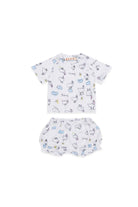 Cotton newborn set with all-over print of little animals and clouds for a playful style.