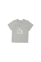 100% cotton T-shirt with logo and rocking horse print on the front.