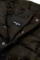 Long quilted padded jacket in glossy nylon with hooded hood. The contrasting Dsquared2 logo along the closure gives an iconic and instantly recognizable touch.