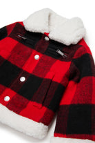 Long-sleeved shearling-type jacket in soft plaid flannel with teddy inner. A mix of comfort and character, with utility pockets and the horror-themed logo on the back.