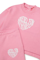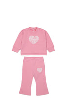 Tracksuit with a printed logo in a casual design and heart graphic on the chest and leg. The set includes a sweatshirt and cotton pants.