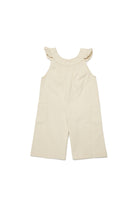 Long jumpsuit with logo and ruffles on the shoulders. Sleeveless design with ruched details and patch pockets on the sides.