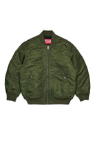 Gabardine bomber jacket perfect for mid-seasons. Shooting along the sleeves adds movement to the silhouette, while the maxi Oval Diesel logo embroidered on the back lends style and recognition to the garment.
