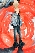 Short padded jacket with matte finish. It is distinguished by the Acid Rain allover graphic, an impactful pattern that gives it a bold, contemporary character.