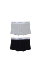 Set of two pairs of boxer shorts in stretch jersey cotton. Customised with striped waist logo.