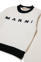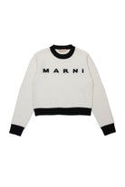 Crew-neck, long-sleeved, wool-blend cashmere sweater with ribbed colorblock cuffs, hem and collar. Features a contrasting Marni Institutional logo on the front.A stylish touch suitable for the most special occasions.