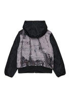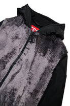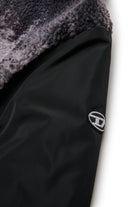 Jacket made from a mix of materials that best expresses Diesel style. The hood and sleeves in shiny fabric create a contrast with the softness of the teddy distinguished by an original tie-dye effect. Perfect for facing winter with personality.