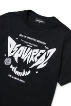 Soft cotton jersey short-sleeved T-shirt with Dsquared2 glossy effect print in contrasting color. The graphic inspired by horror imagery gives an original and out-of-the-box aesthetic.