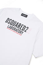 Soft cotton jersey short-sleeved T-shirt with Laboratory logo printed on the front and an original graphic on the back, in which the Canadian Maple Leaf, the iconic symbol of the Dsquared2 universe, is integrated. A garment full of personality and style.
