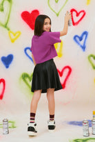 Short pleated skirt in coated fabric with elasticated waist, enhanced by the iconic color contrast stitching on the back. Versatile and characterful, it is easily paired to create various outfits.