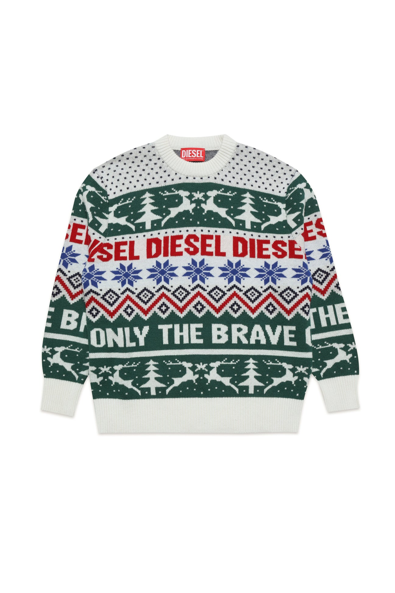 Inside the Brave Kid online shop you can find a wide selection of boys' sweaters, cardigans and pullovers of all kinds and for every occasion of use, made by big brands such as Diesel, N°21, Marni, MYAR and MM6 Maison Margiela. Comfortable, warm and easy to match, our baby sweaters will allow you to create many different outfits. Crew-neck, turtleneck, logo, distinctively shaped, cotton, wool-blend, cashmere-blend, with fun patterns, colorblock...complete your child's wardrobe with the pattern you like best! Brave Kid's boy sweaters fully meet the needs of the youngest in terms of comfort, practicality and style, leaving them free to play and move. You can choose to pair them with a nice pair of pants for a stylish and chic look or compose a casual and sporty outfit with a pair of jeans and boy sneakers. Check out our selection of boy's clothing and find the perfect items to personalize and make his outfit unique.