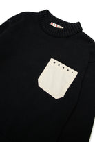 Crew-neck pullover in 100% cotton with contrasting patch pocket on the chest.