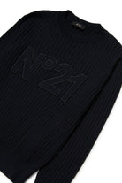 Crew neck pullover in 100% cotton with ribbed texture and logo applied on the chest