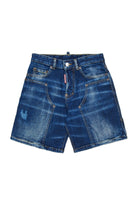 Denim shorts with a lived-in effect and contrasting color stitching.