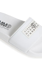 Modern design slide slippers. Numeric logo in contrasting colour on the upper. PVC upper. Polyurethane sole. Made in Italy.