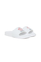Modern design slide slippers. Customised with Maple Leaf outline logo in contrasting colour. PVC upper. Polyurethane sole. Made in Italy.