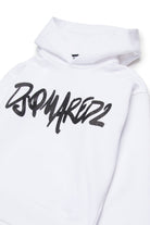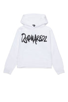 Long-sleeved hooded sweatshirt. Dsquared2 logo with applied rhinestones on the front. Ribbed cuffs and bottom construction. Made of 100% cotton. Perfect for evening parties and special occasions.