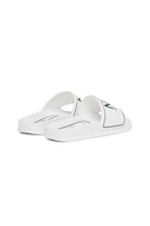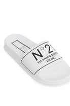 Modern design slide slippers. N°21 Milano Via Santo Spirito logo in contrasting colour. PVC upper. Polyurethane sole. Made in Italy.