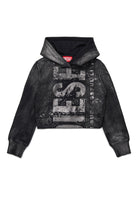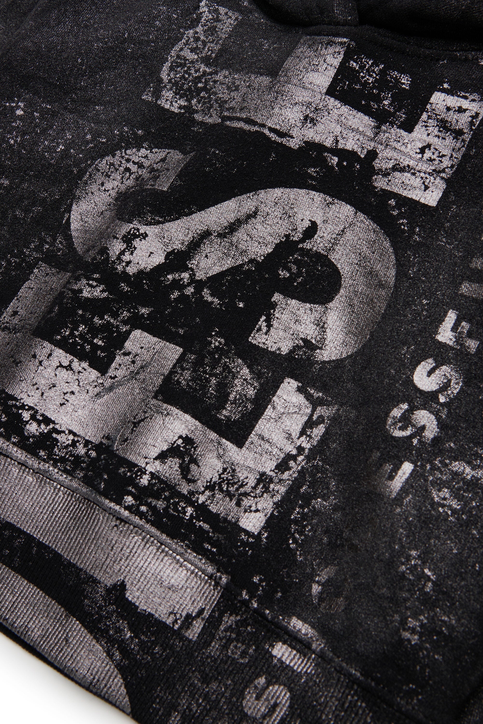 Long-sleeve hooded sweatshirt with a worn-in look. Mylar spray print and Diesel For Successful Living institutional logo maxi on the front add style and identity.