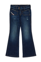 Dark blue bootcut jeans with abrasions - D-Eki