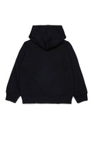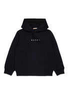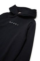 Long-sleeved hooded sweatshirt with an essential and modern design. The institutional logo in a contrasting color mini version on the chest and ribbed hem give character to the garment, perfect for a casual yet sophisticated look.