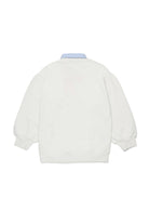 Oversized crewneck sweatshirt with detachable collar in contrast color poplin. The ruffles on the sleeves and the maxi Monogram emblem on the front define a garment with a strong appeal that is versatile and easy to match.
