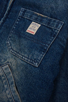 Trucker jacket in dark blue denim with a dirty effect. The teddy collar adds contrasting texture, while the label on the heart-side pocket gives a distinctive accent. A perfect garment for those who love denim with an authentic soul.