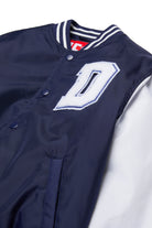 Padded varsity jacket with D patch on the front on the heart side and Diesel logo printed on the back. It features a button closure.