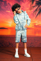 Shorts with ripped denim effect print
