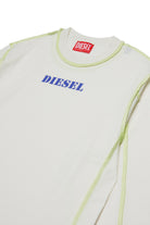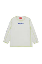 Long-sleeved cotton blend T-shirt with an oversize fit. The DIESEL print on the front and "For Successful Living" lettering on the sleeves add a distinctive touch. Color contrast overlock stitching emphasizes the garment's bold character.