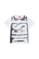 Cotton jersey T-shirt with digital print depicting a tank top with maxi Diesel logo.