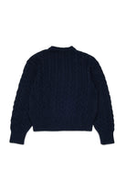 Crew neck pullover in 100% cotton featuring a cable knit design and an applied pocket with a maxi patch-effect logo on the chest.