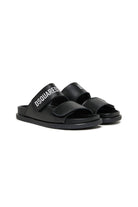 Slide sandals with a contrasting DSQUARED2 logo on the front strap and double adjustable bands. A distinctive and contemporary style.