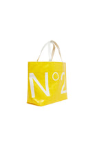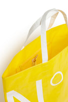 Tote bag with printed logo and contrasting handles for a contemporary design.