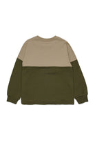 Two-tone crew-neck long-sleeved sweatshirt featuring a re-cut construction typical of MM6. The design simulates the assembly of two deconstructed and reassembled garments resulting in a bold and contemporary look, emphasized by the raw cut bottom.