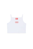 Sleeveless top in 100% cotton with front logo. A garment with an essential style and clean design.