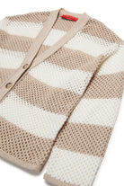 Long-sleeved 100% cotton knit cardigan. Characterised by an all-over print striped print. Front button closure with logo buttons.