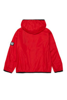 Windbreaker with printed logo on the chest and contrasting details. The design features a fixed hood and a front zip fastening.