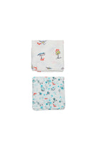 Set consisting of two 100% cotton muslins. Both feature an all-over print on one side in the Happy Sun and Magic Farm patterns respectively.Any differences between the photographed item and the one you will receive are a symbol of the fine workmanship, quality and uniqueness of the product.Measurements: 110 cm high, 110 cm wide.