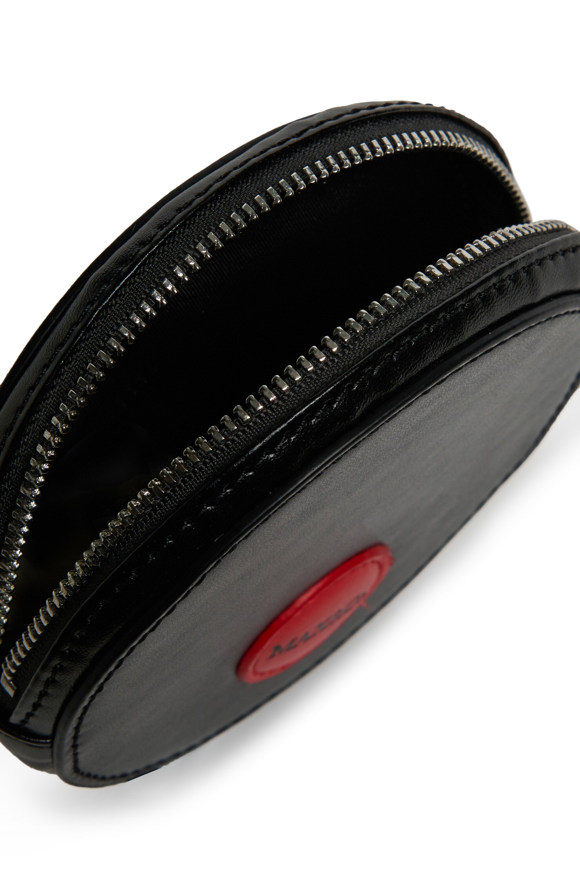 Dot bag with circular shape. Tonal logo patch. Zip closure. Adjustable shoulder strap. Internally lined. Pouch and crossbody wearable.