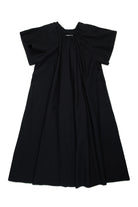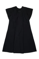 Long-sleeved short-sleeved dress in heavy cotton poplin. Gathered neckline. Numeric logo embroidery in color tone on the front. Raw cut hems on armholes and bottom. Flush side pockets. Iconic seam at back. Made of 100% cotton.