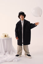 Single-breasted coat with logo and iconic stitching on the back. A design with clean lines, featuring a wide collar and slanted front pockets.