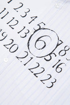 Short-sleeved shirt with printed logo and front numerical motif. The style features a bicolor design with one half in fine stripes and the other in a solid color.