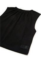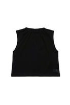 Cropped sleeveless jersey T-shirt. Gathers at the collar along the garment. Numeric logo on the bottom in color tone. Iconic seam at back. Made of 100% cotton. Made in Italy.