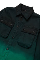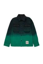 Shirt jacket with applied logo, gradient effect, and front flap pockets.