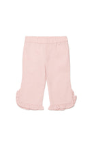 Pants with ruffle details at the hem. A practical piece with a playful style.