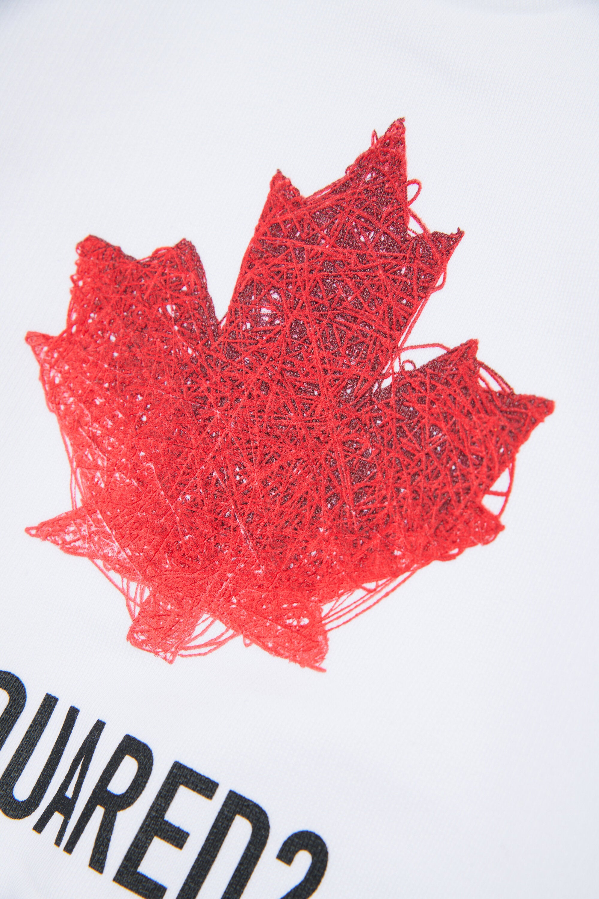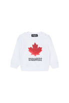Crewneck sweatshirt with Dsquared2 logo, glittered maple leaf on the chest, and ribbed details.