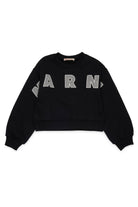 Cropped crew-neck sweatshirt with embroidered Marni patch logo