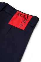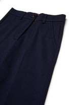 Wide-leg cropped pants with logo. They feature a tailored construction with pressed crease and a logo patch applied on the back.