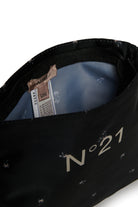 Nylon clutch bag with all-over print Palms. N°21 Institutional logo on one side. Carried by hand and cross-body. Adjustable shoulder strap. Measurements: 21 cm high, 21 cm wide. Handle drop: 40 cm.